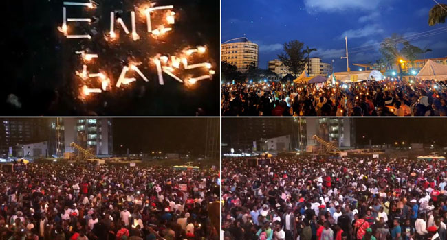 Protesters calling for an end to the brutality suffered at the hands of the Special Anti-Robbery Squad (SARS) are holding a candlelight vigil in honour of all those who have been killed by operatives of the unit and the police in general.