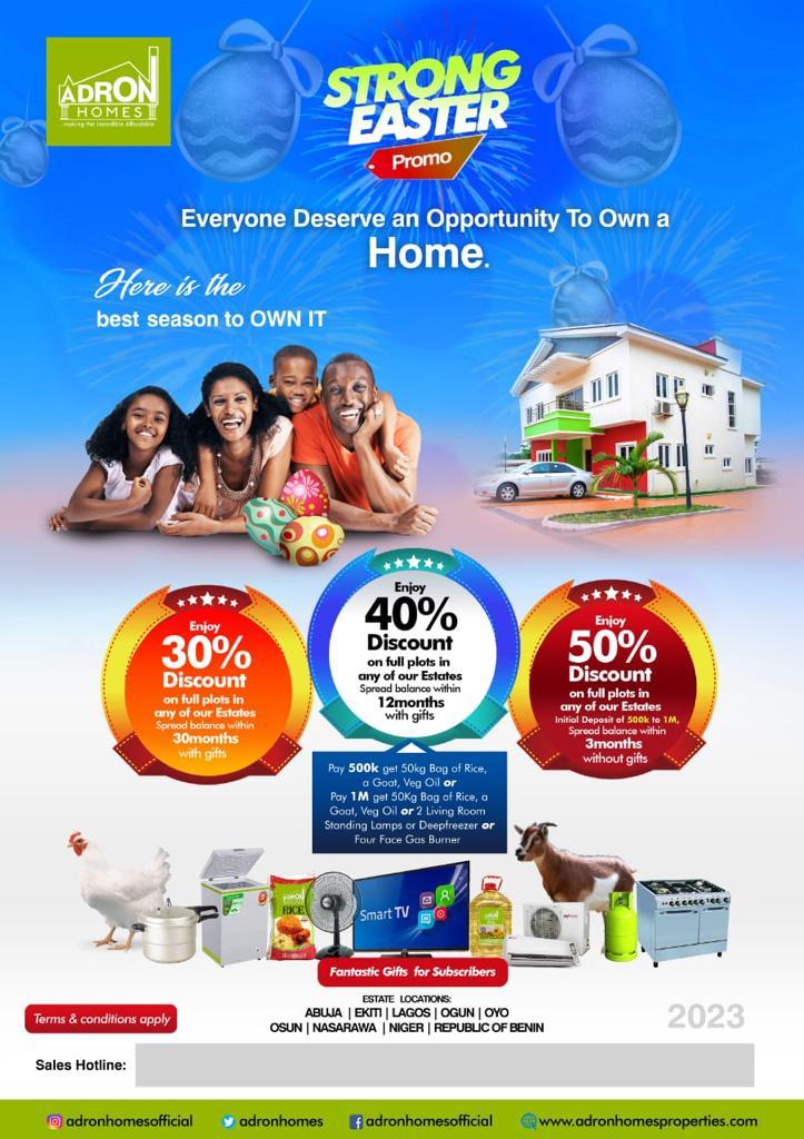 Enjoy the best deals this season with Adron Homes, subscribe to this exclusive discount offer today affordable to all irrespective of your monthly income, get started with a flexible means of payment which can be payable within 12-48 months.