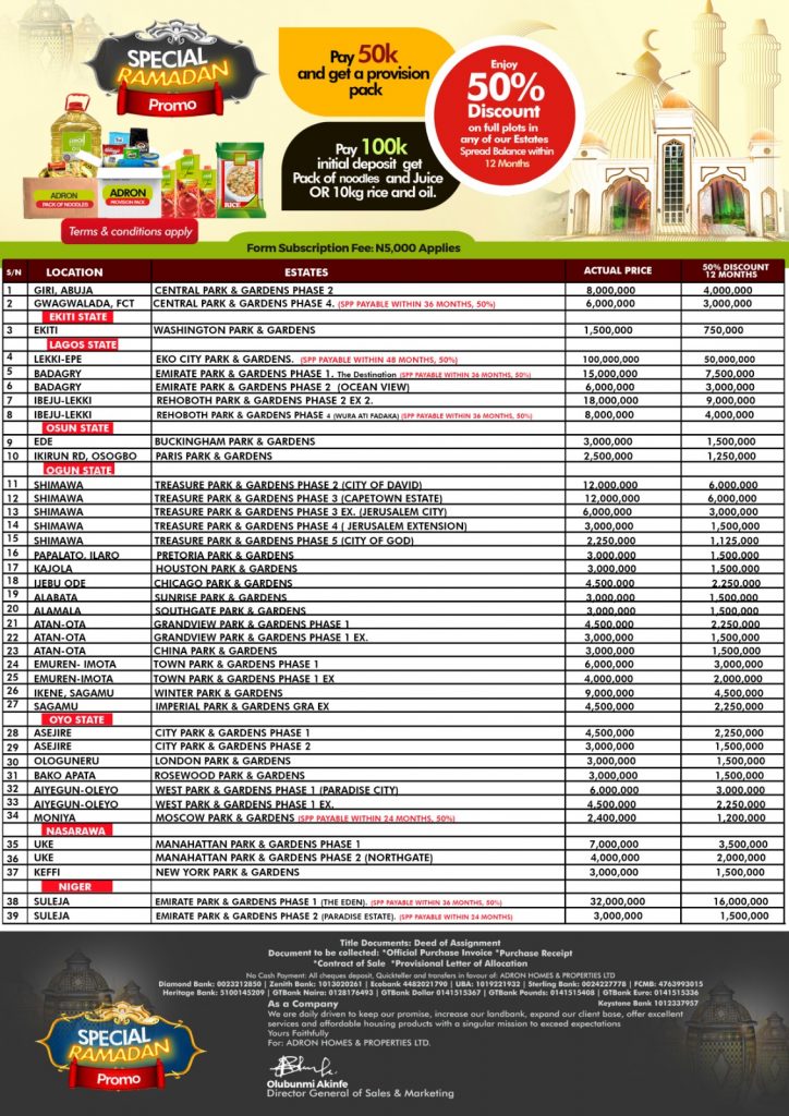 - Buying for Commercial Purpose: Lands are very much still available at discounted amount for you to build and profit from your mega business in Adron Estate.