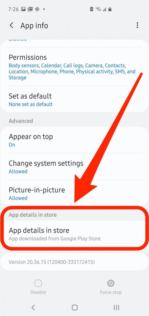 5. Scroll to the bottom of the page and tap “Advanced,” then “App details.” If you don’t see that, just choose “App details in store.”