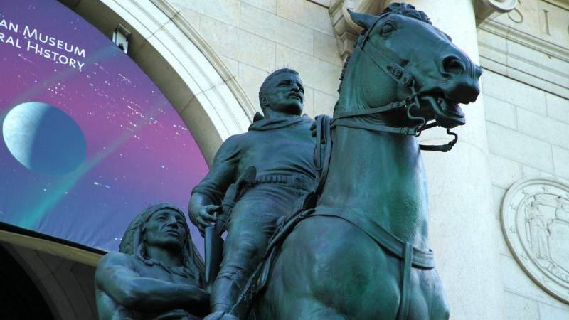 The bronze sculpture of Roosevelt, which has been at the entrance of the American Museum of Natural History (AMNH) for 80 years, depicts the former leader on horseback towering over a black man and a Native American man — who are both on foot.